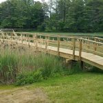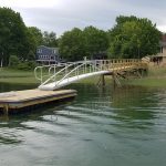 The pier connects the shoreline with the water, bridging wetland to bring users to a 3′ x 36′ arch-style alumiunum gangway and then an 8′ x 16′ floating dock.